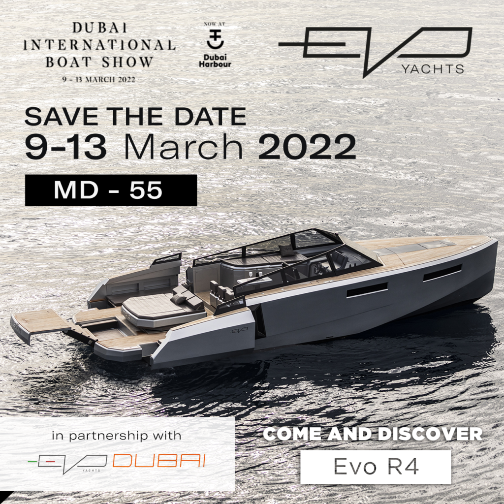 This will be the first time Blu Emme Yachts brand Evo Yachts has taken part in the Dubai International Boat Show, the biggest and most important event of its kind in the Middle East, thanks to the recent agreement with local dealer Evo Yachts Dubai. The new partnership confirms the brand’s growing reputation in the region and covers the distribution of the entire Evo range in Saudi Arabia, Oman and the United Arab Emirates.