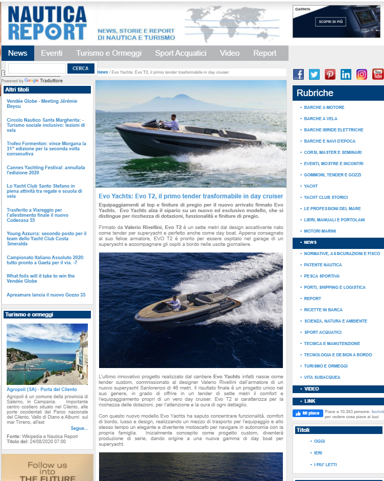 Top equipment and fine finishes for the newcomer by Evo Yachts. Evo Yachts raises the curtain on a new and exclusive model, which stands out for its wealth of features, functionality and fine finishes. Signed by Valerio Rivellini, Evo T2 is a seven-meter with an attractive design born as a tender for superyachts and also perfect as a day boat.