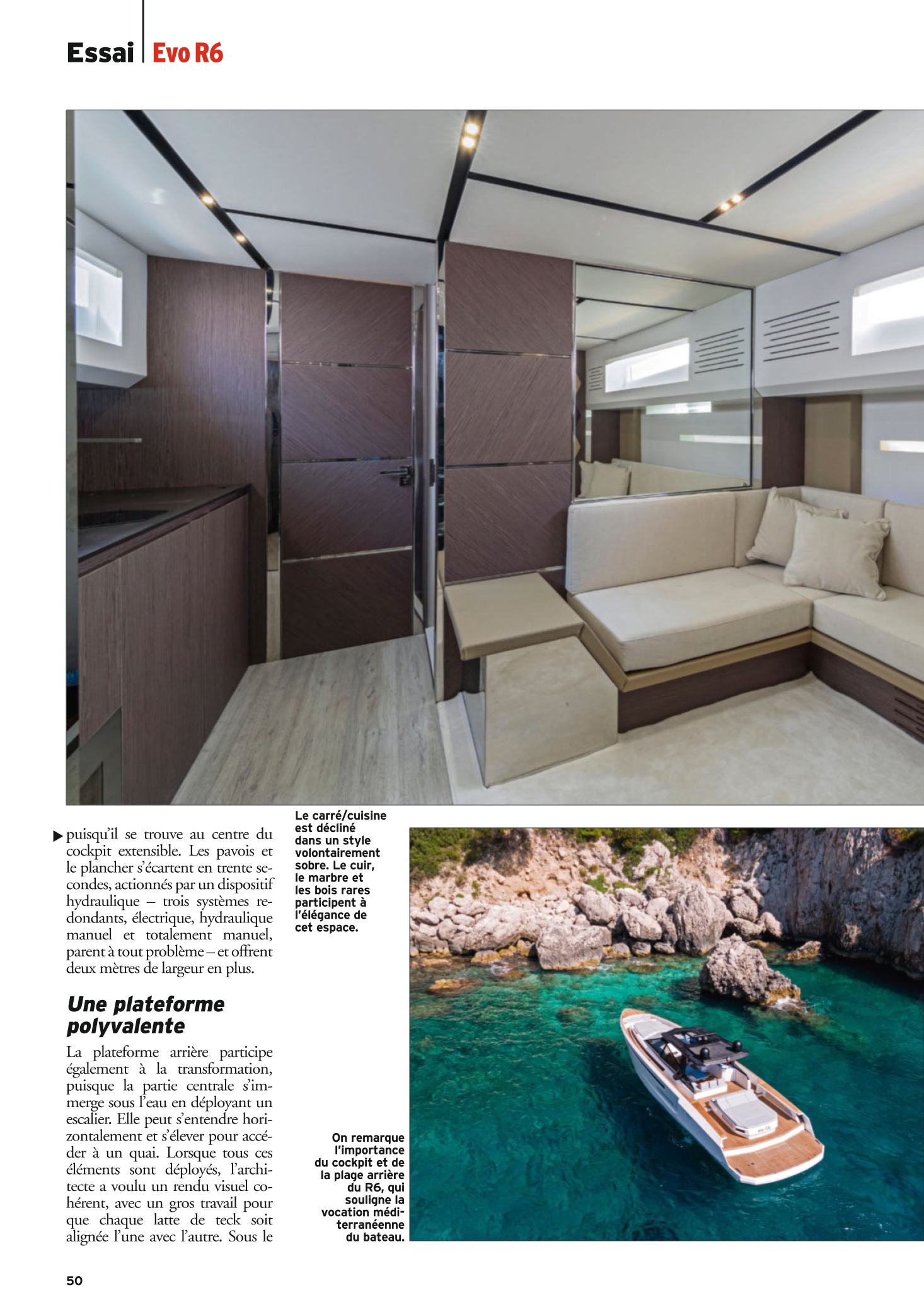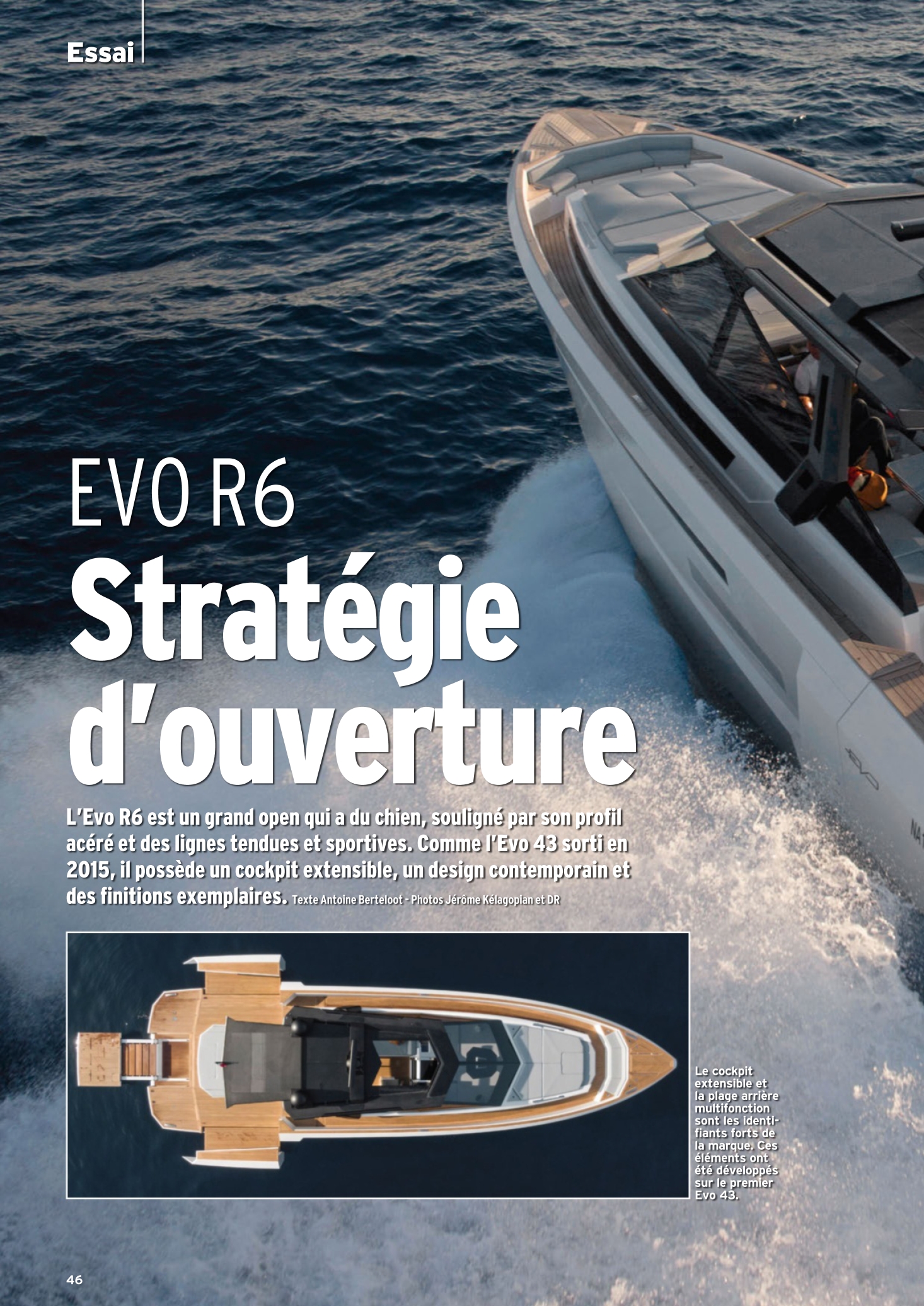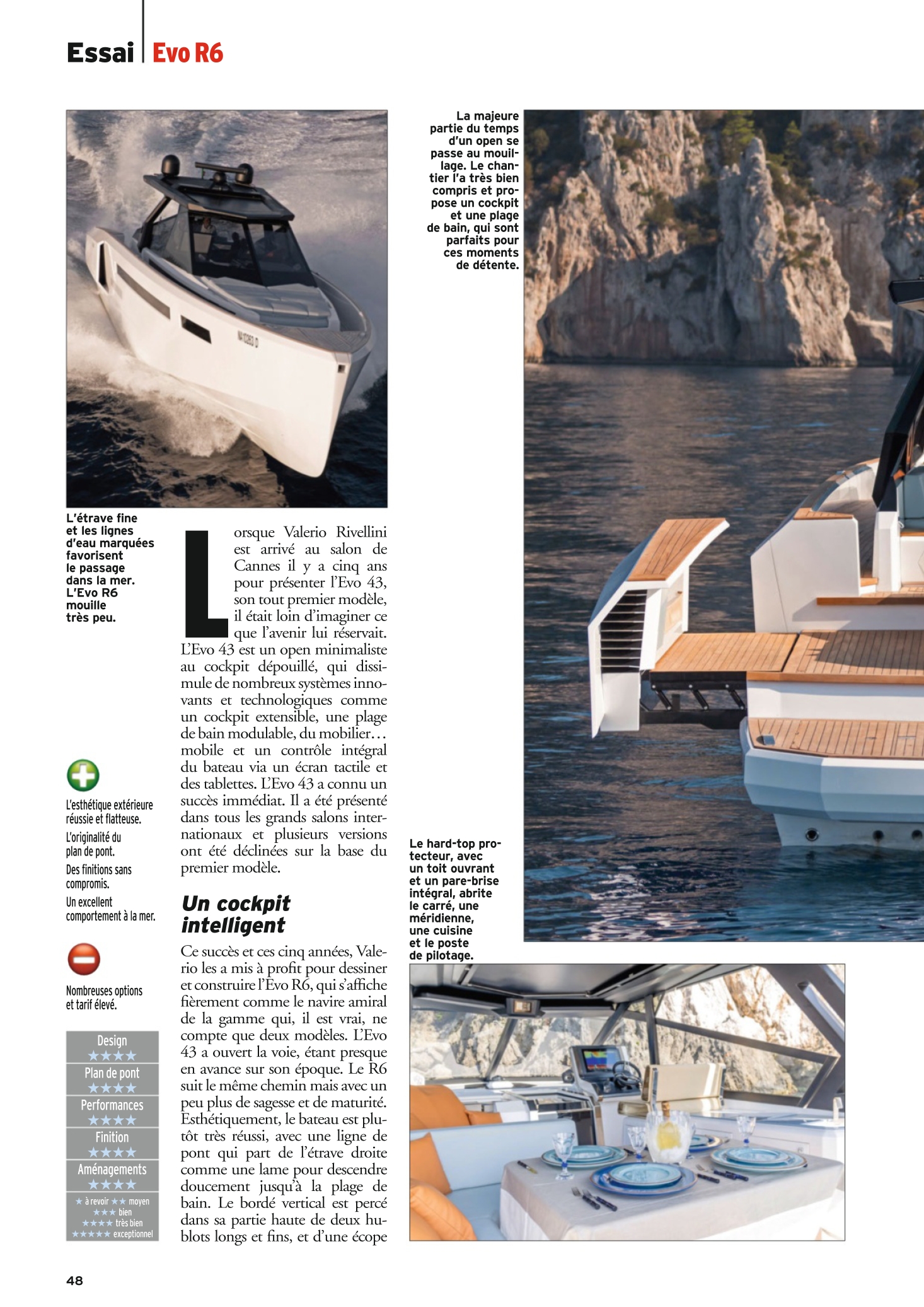 The Evo R6 is a large open, highlighted by its sharp profile and taut, sporty lines. Like the Evo 43 released in 2015, it has an extendable cockpit, a contemporary design and exemplary finishes. When Valerio Rivellini arrived at the Cannes Motor Show five years ago to present the Evo 43, his first model, it was far from imagining what the future held for him.