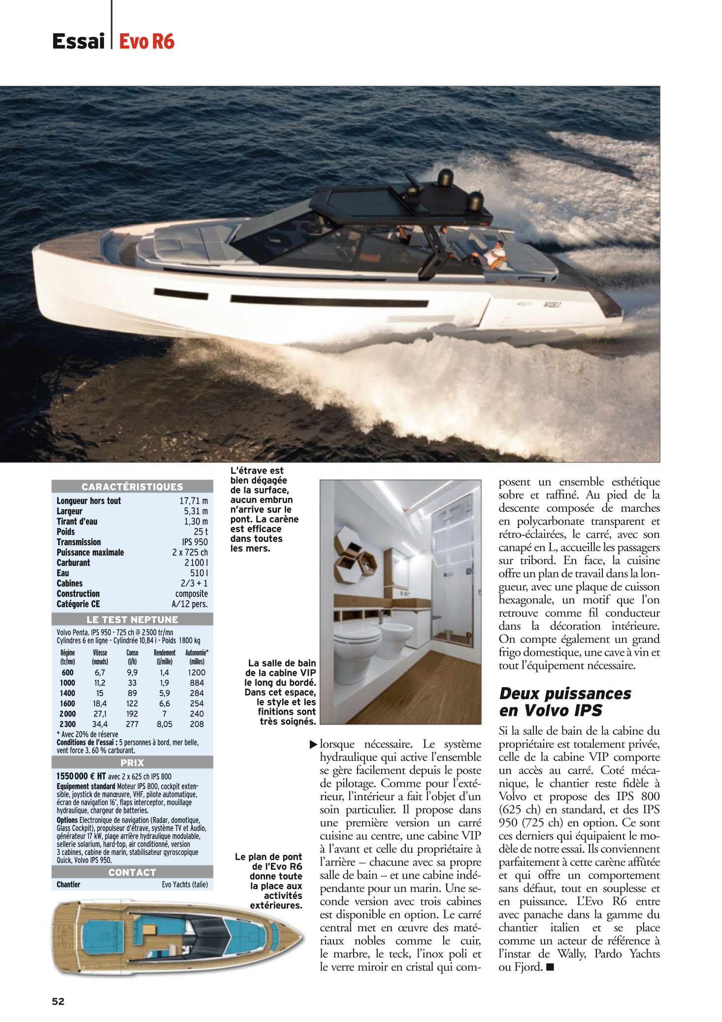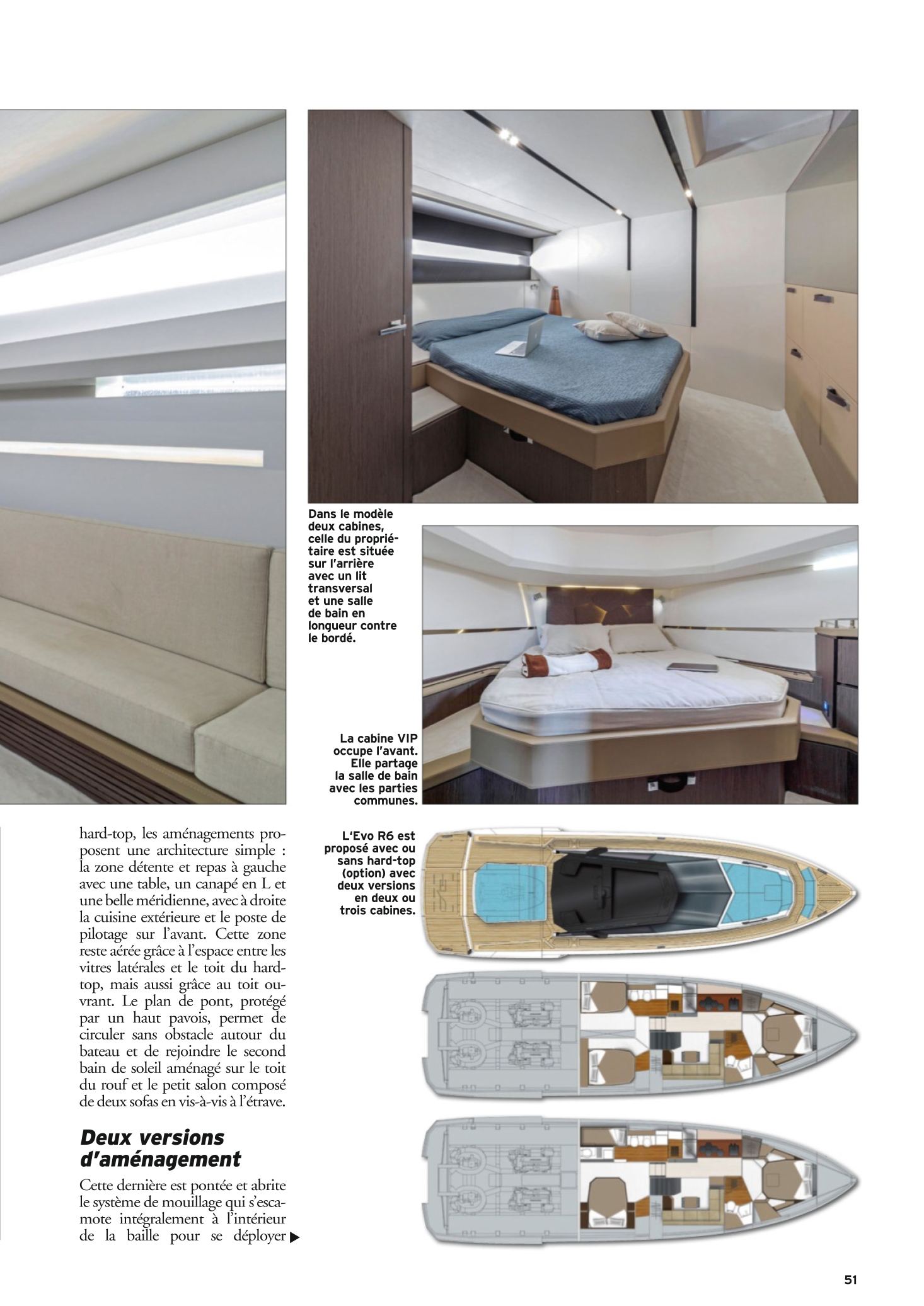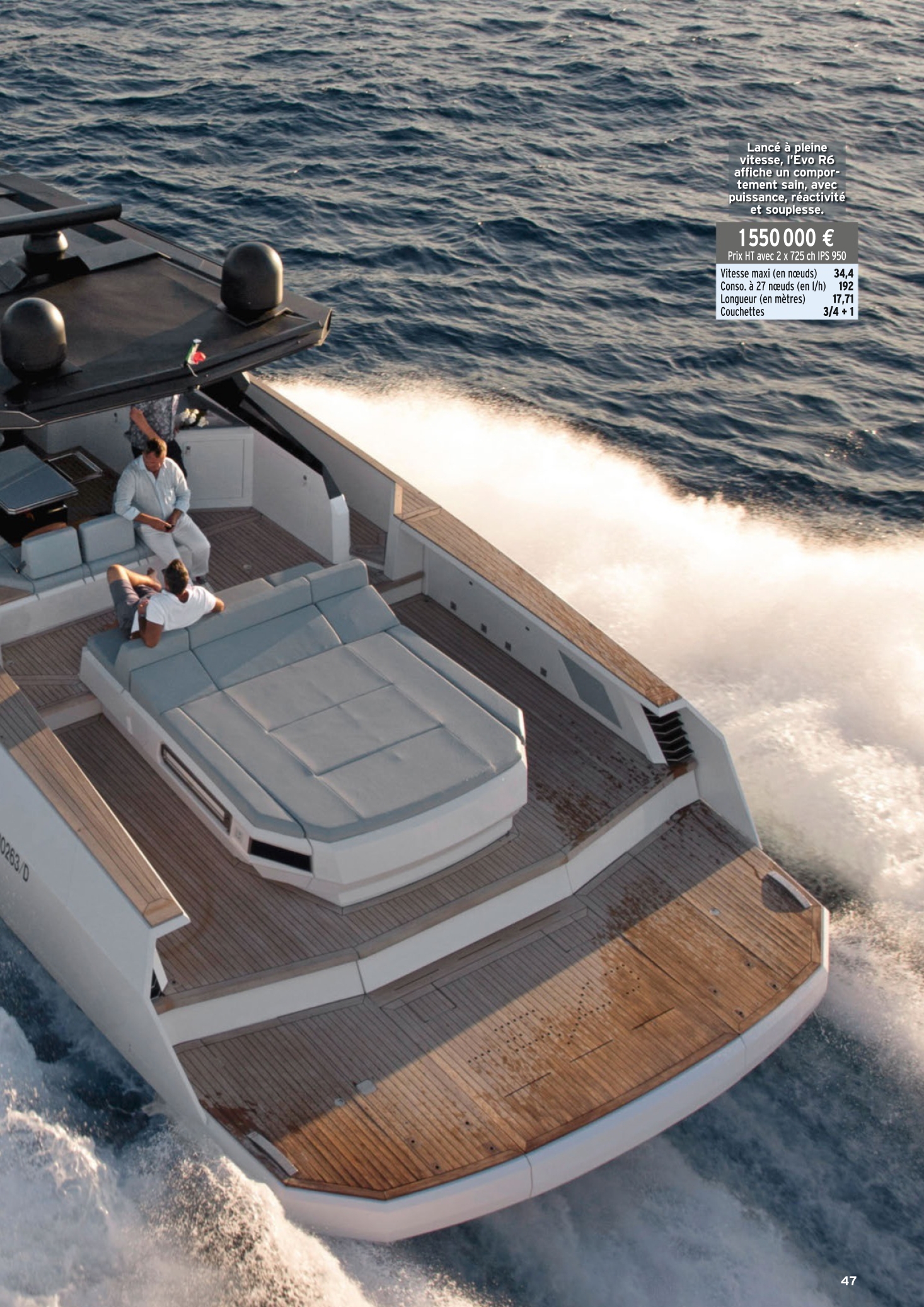 The Evo R6 is a large open, highlighted by its sharp profile and taut, sporty lines. Like the Evo 43 released in 2015, it has an extendable cockpit, a contemporary design and exemplary finishes. When Valerio Rivellini arrived at the Cannes Motor Show five years ago to present the Evo 43, his first model, it was far from imagining what the future held for him.