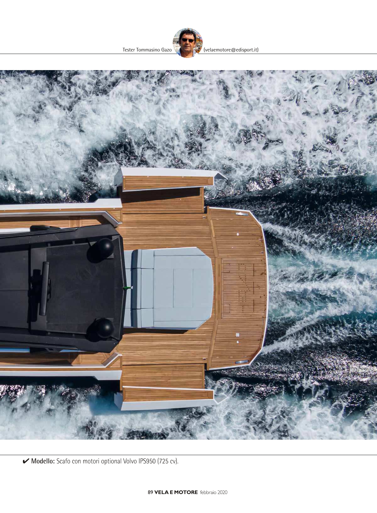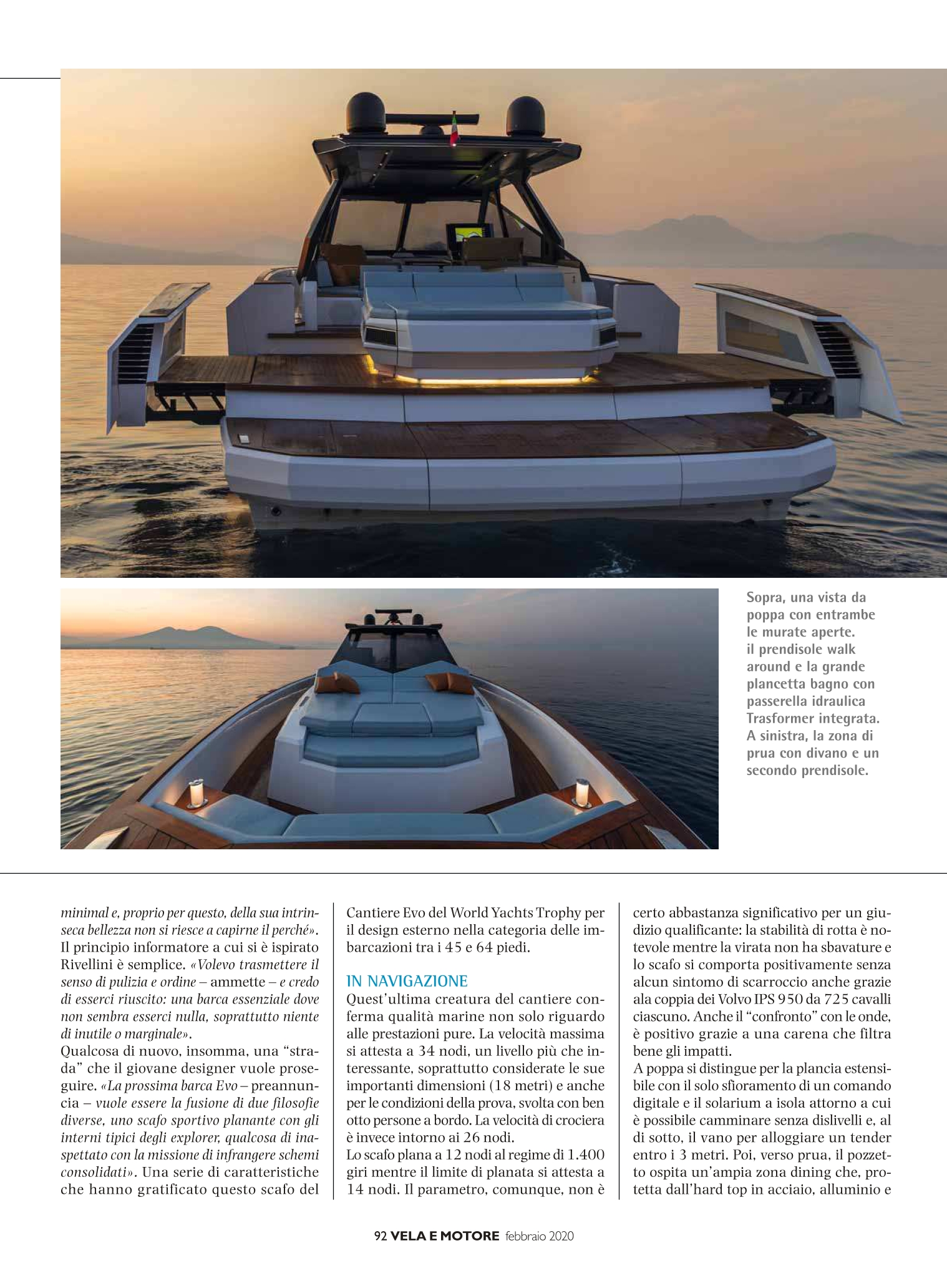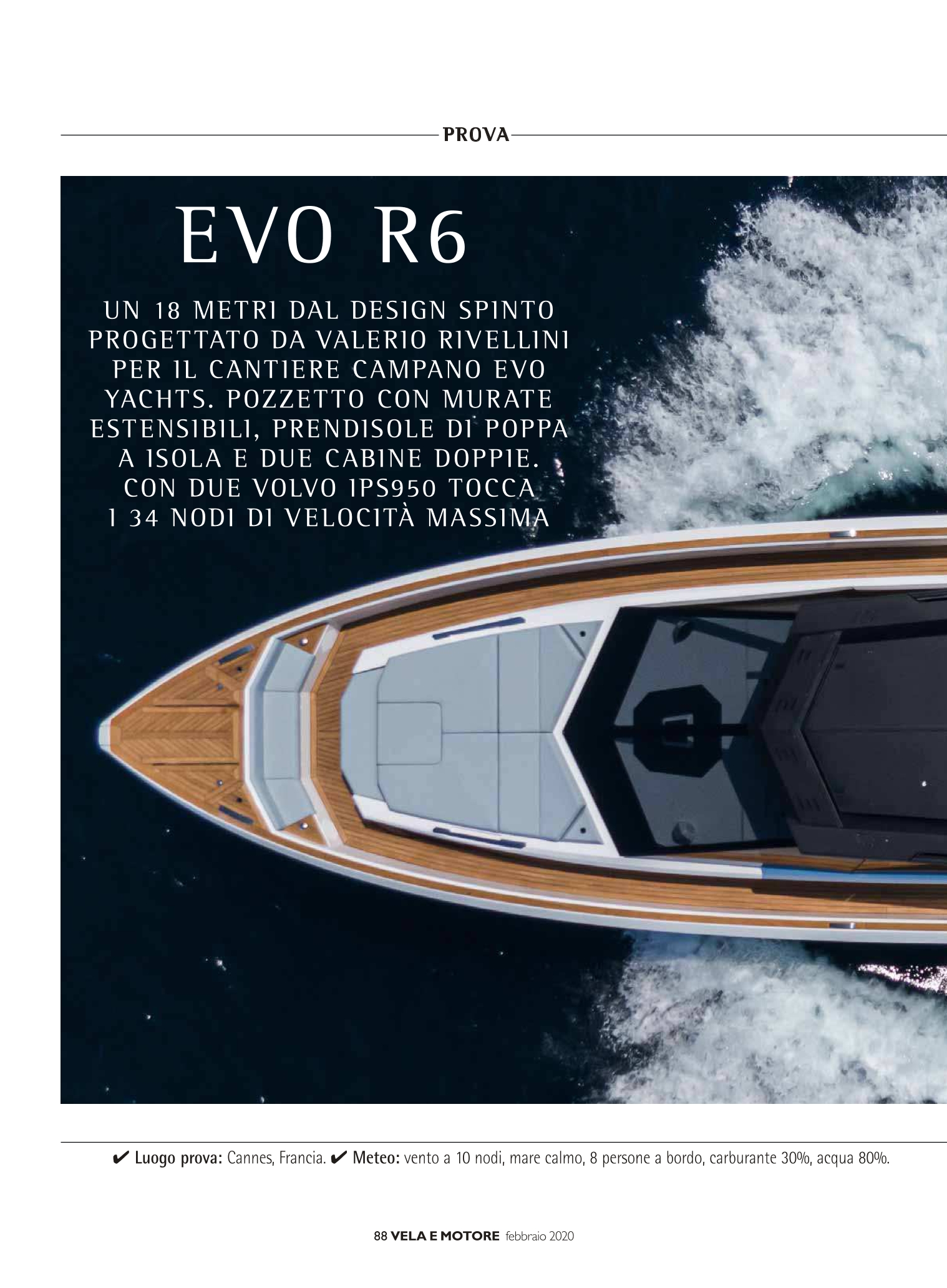 An 18 meter with a strong design designed by Valerio Rivellini for the Campania shipyard Evo Yachts. cockpit with extendable sides, aft sundeck and two double cabins. with two volvo ips950 touches 34 knots of maximum speed.