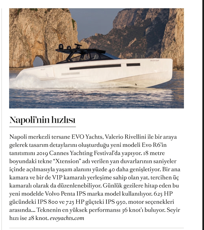 EVO Yachts, un cantiere navale con sede a Napoli, incontra Valerio Rivellini per presentare il nuovo modello Evo R6, i cui dettagli di design sono presentati al Cannes Yachting Festival 2019.