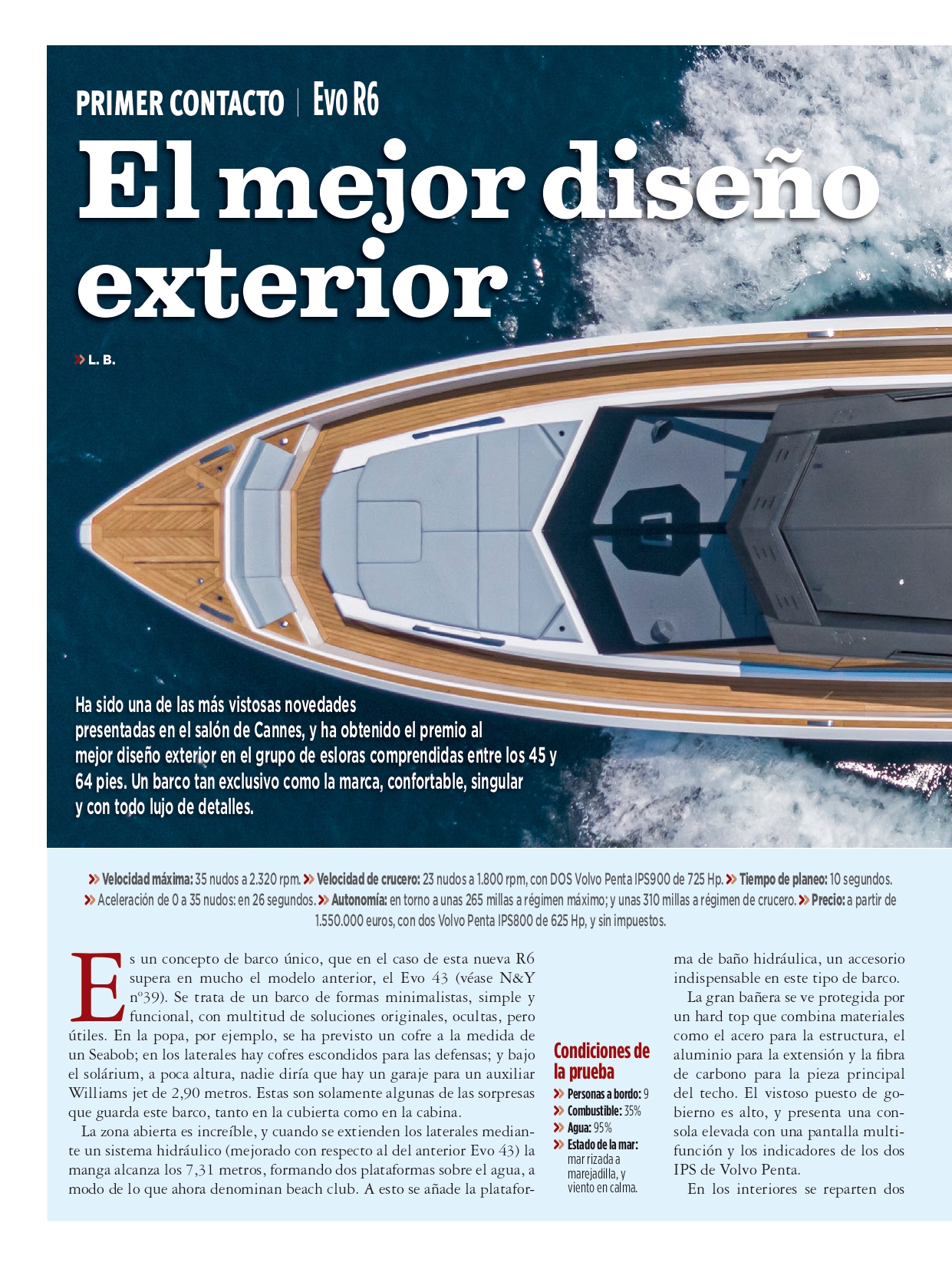 È stata una delle notizie più vistose presentato al boat show di Cannes, e ha vinto il premio per miglior design esterno nel gruppo di lunghezze comprese tra 45 e 64 piedi.